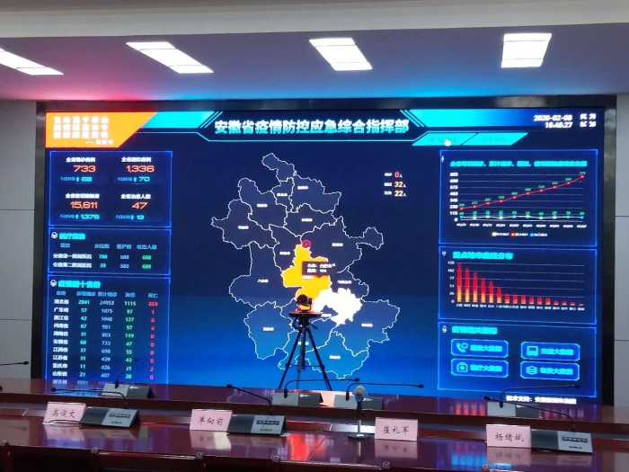依托“安徽云”平臺,開發(fā)的“疫情應(yīng)急防控數(shù)字可視化決策系統(tǒng)”