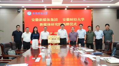 報(bào)告會(huì)前,安徽新媒體集團(tuán)、安徽財(cái)經(jīng)大學(xué)新媒體研究院揭牌儀式舉行,章理中、虞寶桃共同為新媒體研究院揭牌。下一步,新媒體研究院將圍繞應(yīng)用型師資隊(duì)伍打造、專項(xiàng)課題研究申報(bào)、實(shí)用性教材編撰等方面,進(jìn)行創(chuàng)新性探索和實(shí)踐,為新媒體行業(yè)高質(zhì)量發(fā)展增添智慧和力量。會(huì)后,在虞寶桃的陪同下,章理中一行參觀了安徽財(cái)經(jīng)大學(xué)校史館。(記者 李旭 劉職偉)